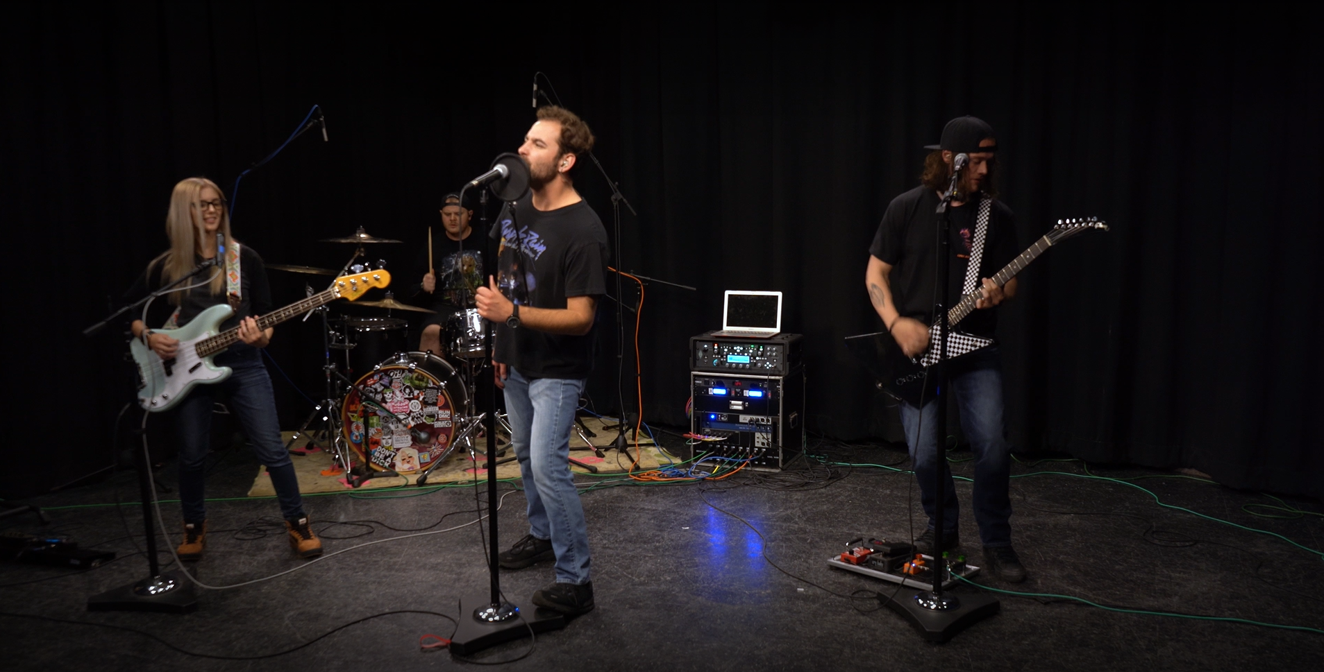 Midnight Lights is a Western Pennsylvanian band brought together by their time at the Indiana University of Pennsylvania. They produce punk-rock/punk-alternative music and play live around the state. I was part of the production team who helped facilitate their music video for their song, Virtual Reality. The band wanted a music video that stayed true to their live sound. We shot the video from three camera angles in the TV Studio and recorded their vocals and instruments via direct injection directly into our audio software, Cubase. I worked as a camera operator and part-time editor for the video. My editing responsibilities included syncing all audio and video tracks before turning everything over to the video’s primary editor, Levi Donaldson. I was also responsible for maintaining communications with the band members. We worked with them throughout the summer to incorporate their critique and feedback into the set of promotional posters that Levi also curated for them.